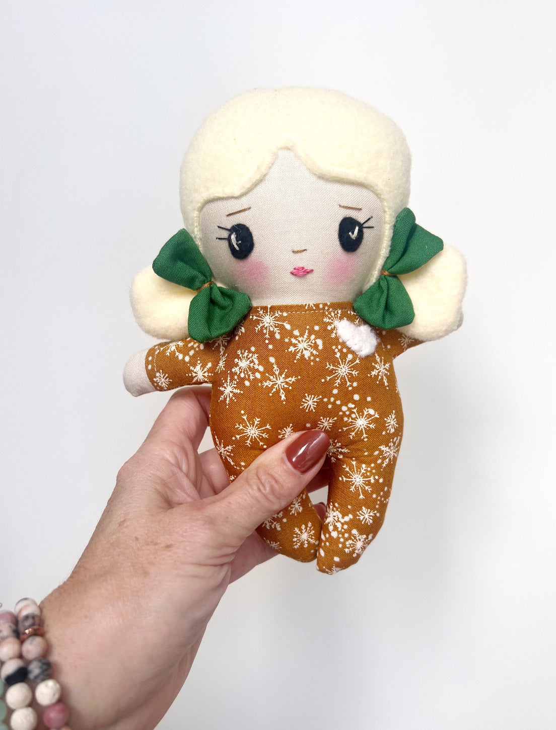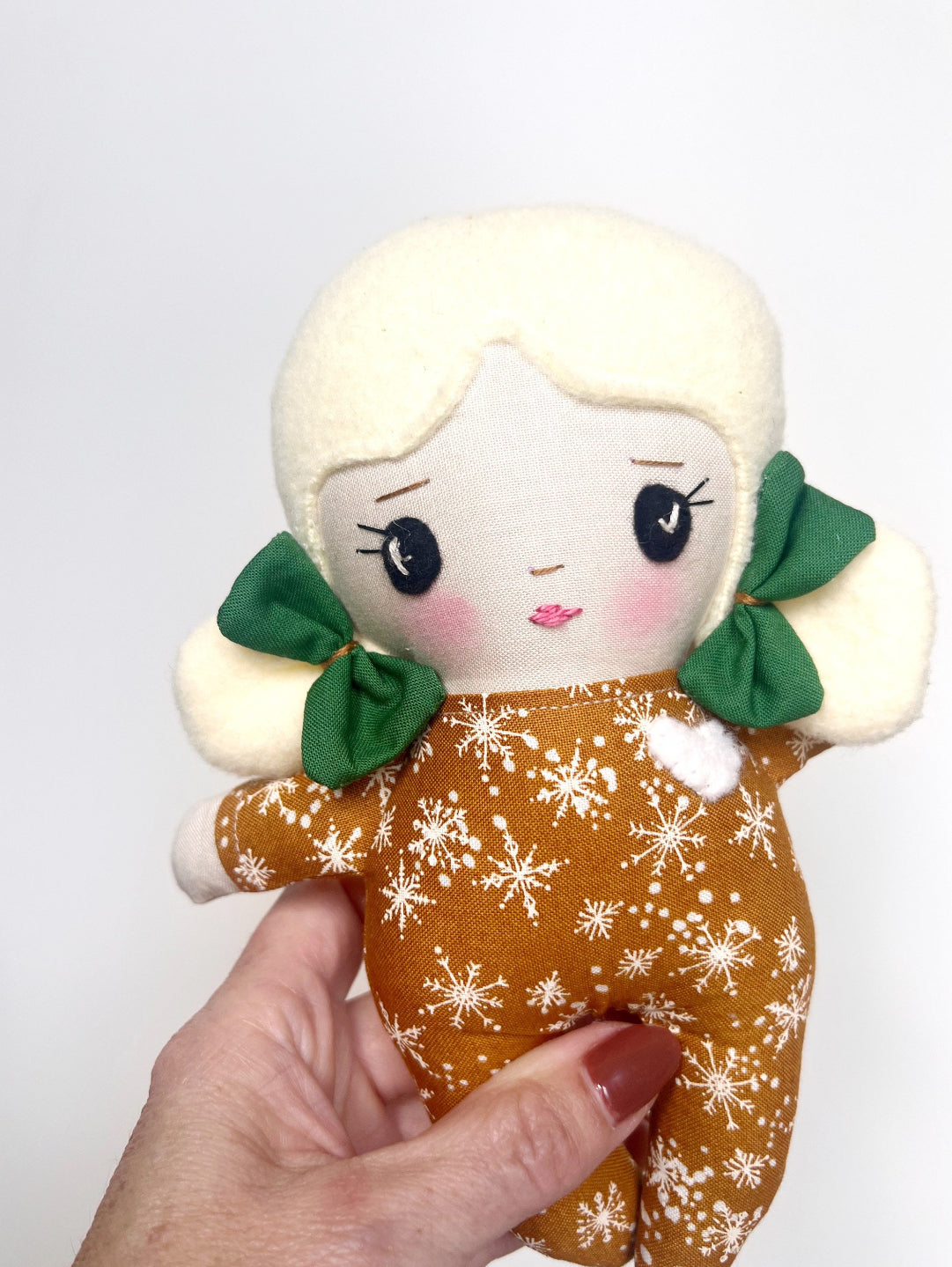 This listing is for the sweetest little baby doll. They are perfect for a first time Doll, since there are no removable parts.