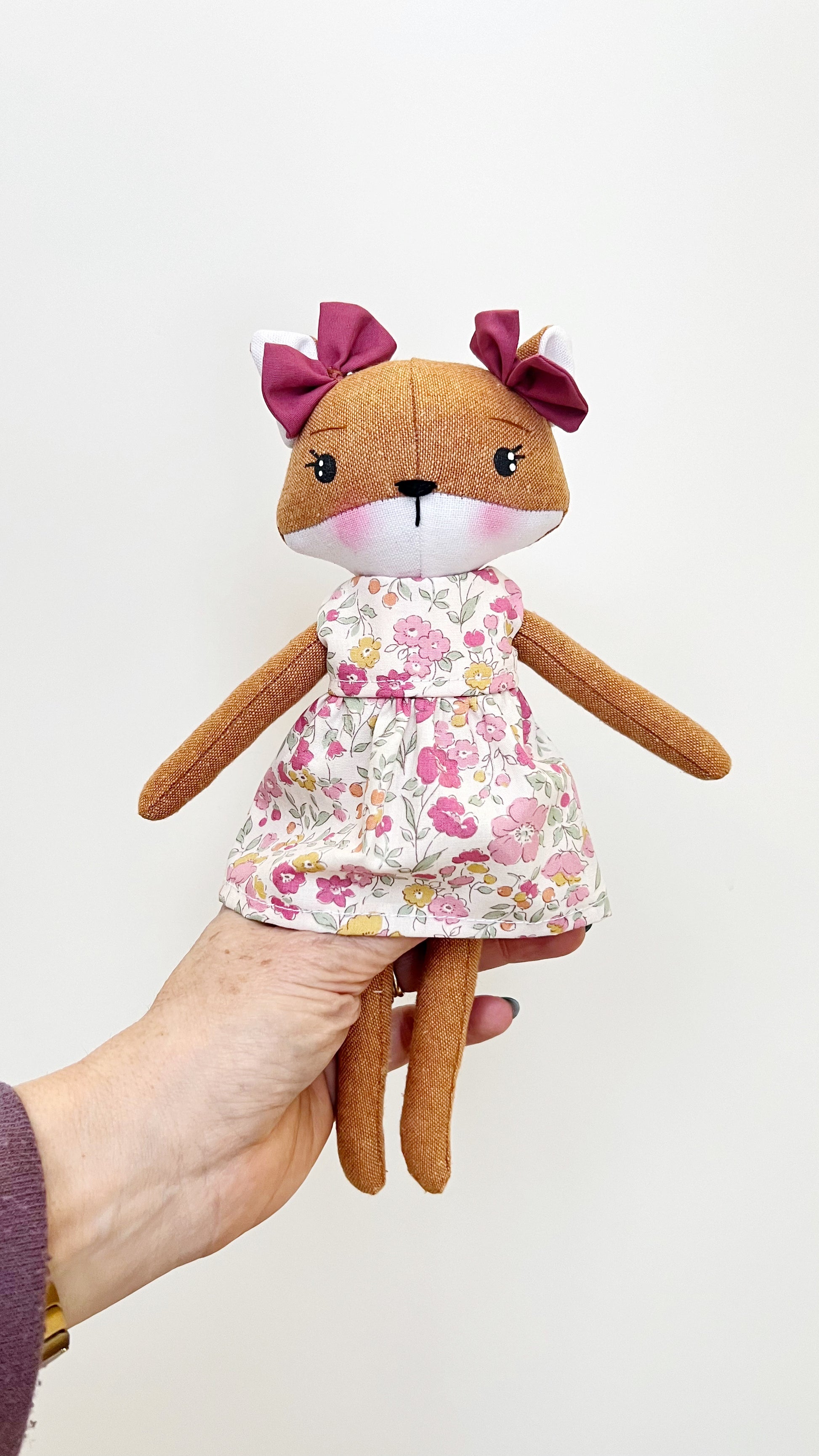 *The eyes are painted on with non toxic fabric paint and the nose and mouth are embroidered on